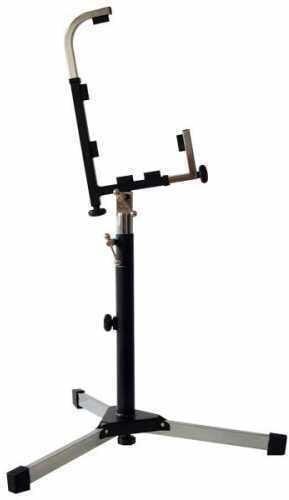 állvány: tangóharmonika tartó állvány, állítható magasság (72 - 108 cm), szélesség: 77 cm, súly: 7 kg, maximális terhelhetőség: 15 kg, acél konstrukció, fekete króm színű felület, maximális stabilitás, csúszásgátló gumi végződések